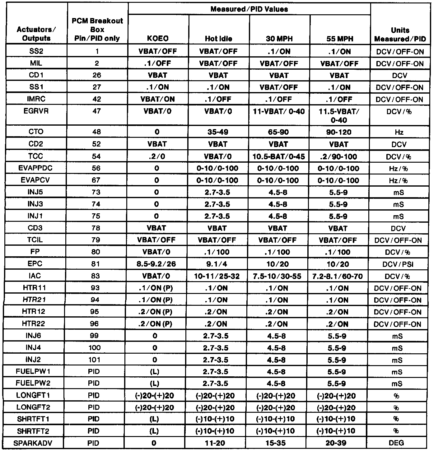 - The Typical Diagnostic Reference Value Charts do not display fault PIDs. These are PIDs which indicate a hard fault with the circuit. They display a value of "YES" or "NO" and are PIDs ending with an "F". These do not include EVAPPF, FF, MAF or VREF.