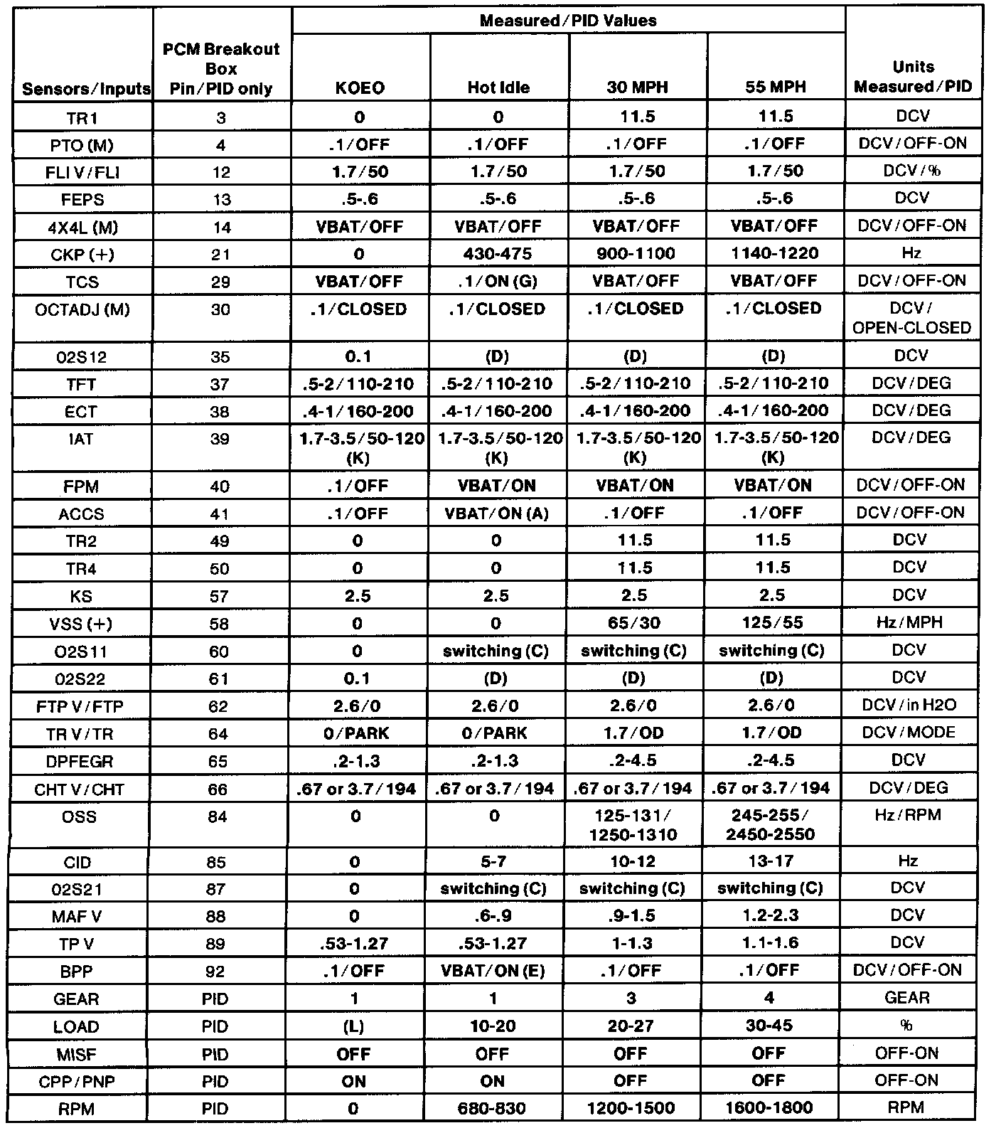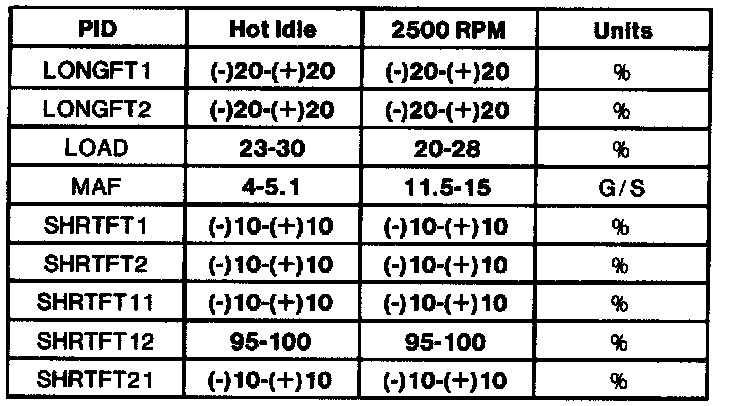 - All generic OBD II readings under no load (PARK or NEUTRAL).