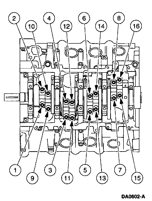 Tighten the connecting rod bolts in two stages, using the sequence shown.