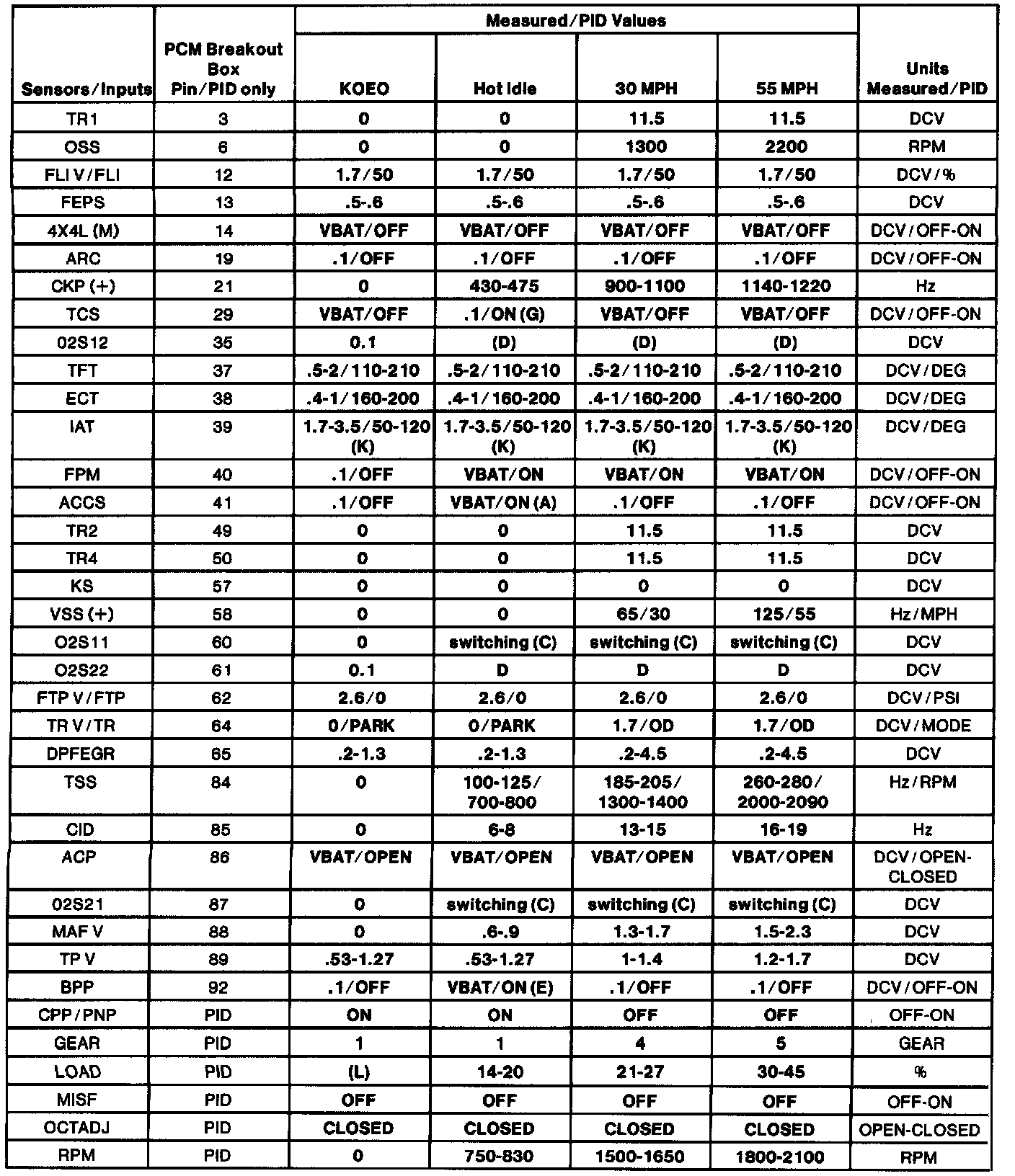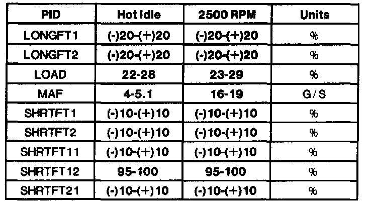 - All generic OBD II readings under no load (PARK or NEUTRAL).