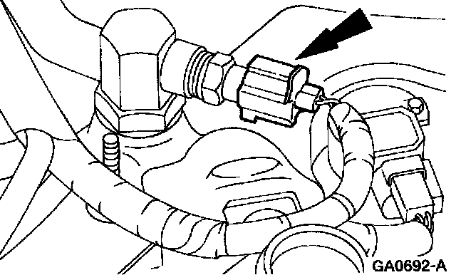 The Engine Coolant Temperature Sensor is mounted at the front of engine, left of throttle body.