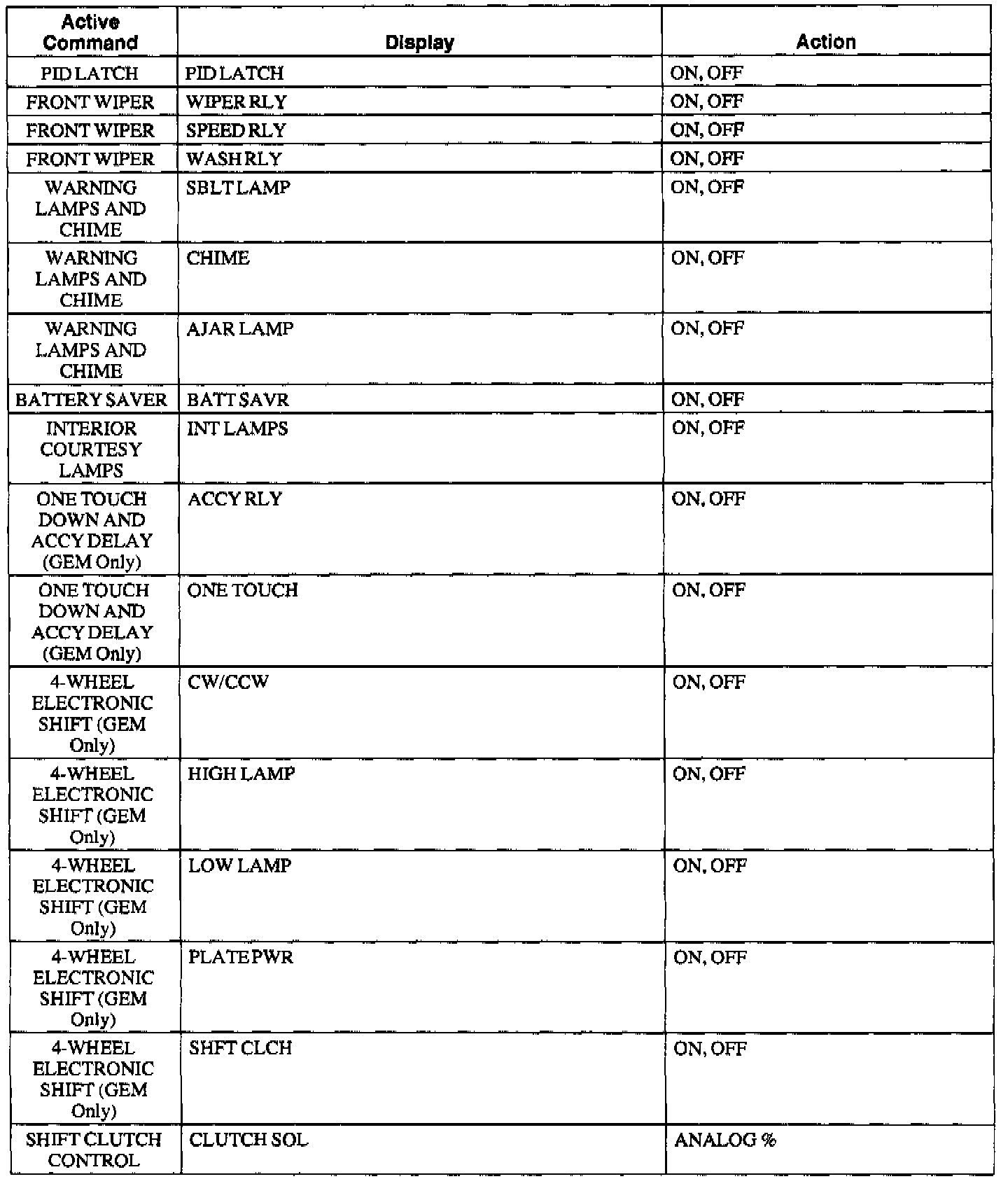 GEM/CTM Active Command Index