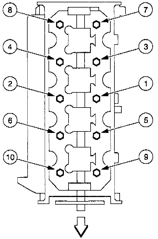 Tighten the bolts in three steps, in the sequence shown.