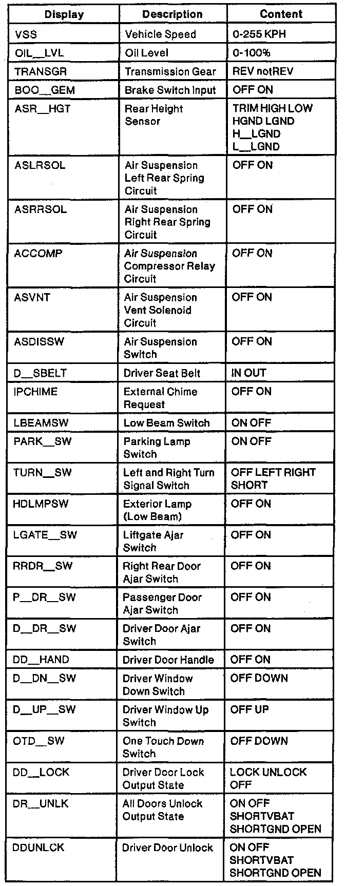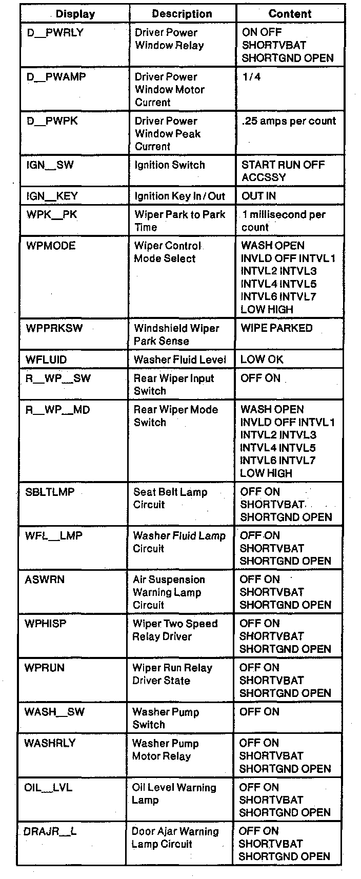 Diagnostic Trouble Code Descriptions