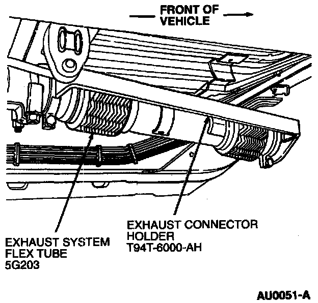 21. Remove Exhaust Connector Holder Tool T94T-6000-AH from exhaust system flex tube.