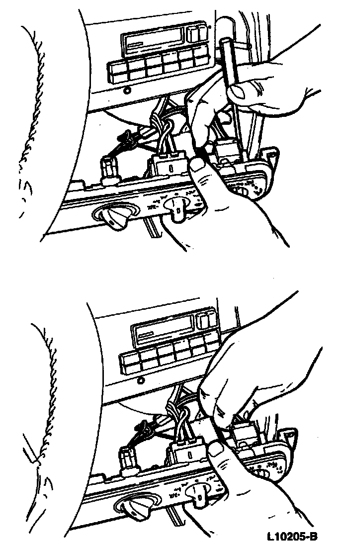 2. Remove instrument panel ash receptacle by pulling service lever downward and pulling assembly outward.
