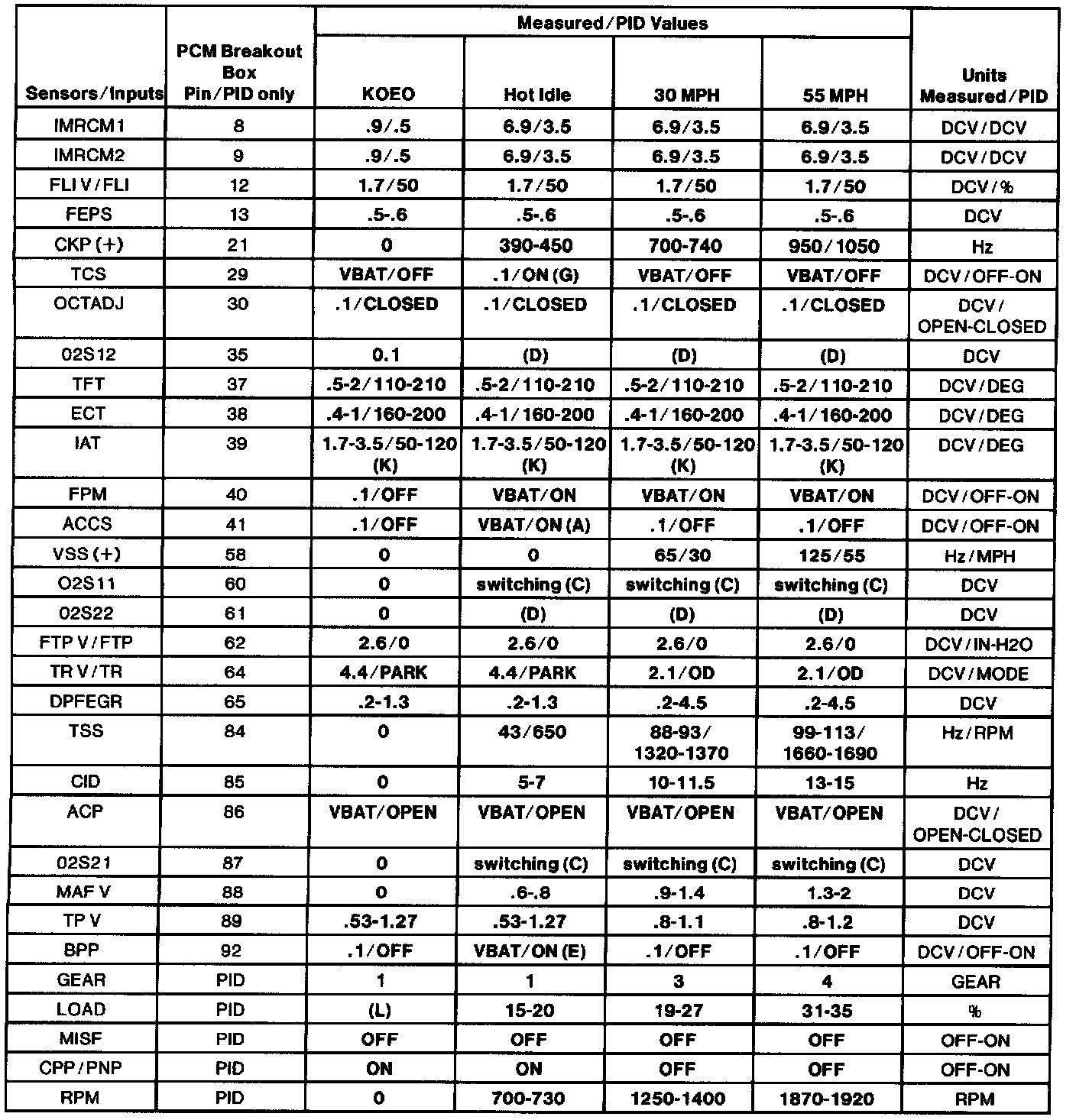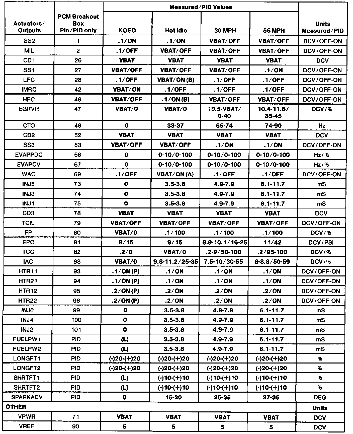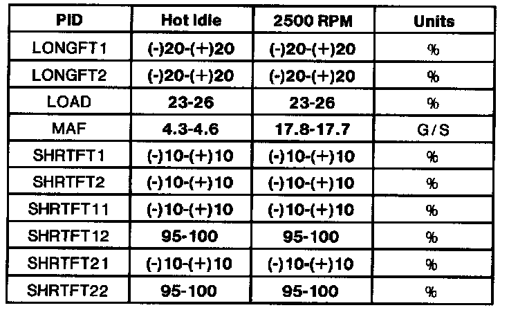 - All generic OBD II readings under no load (PARK or NEUTRAL).