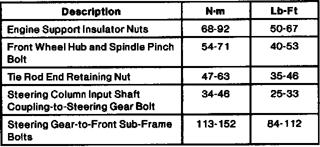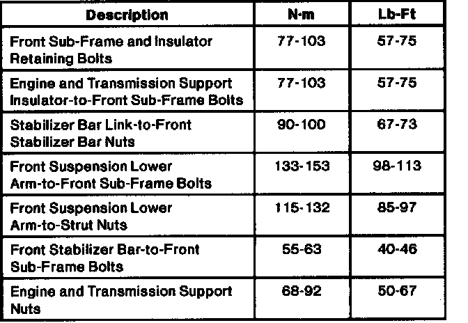 Torque Specifications:
