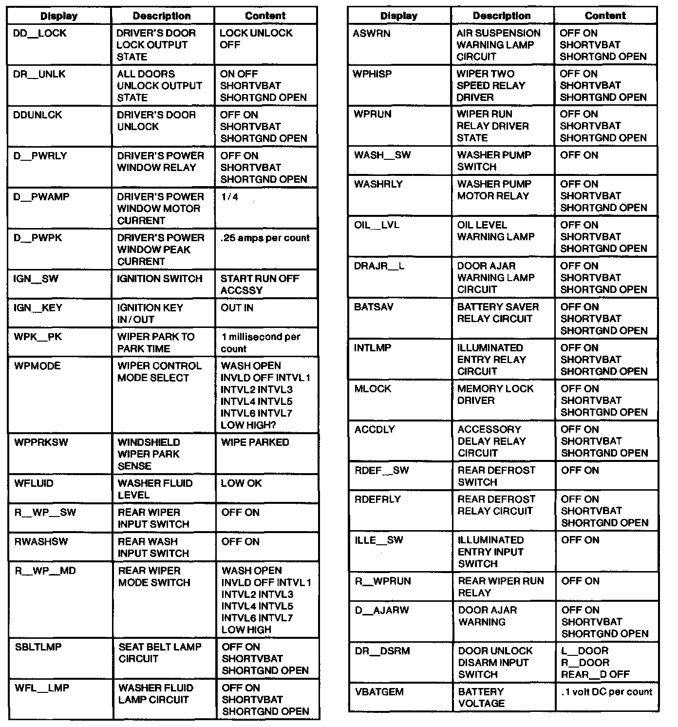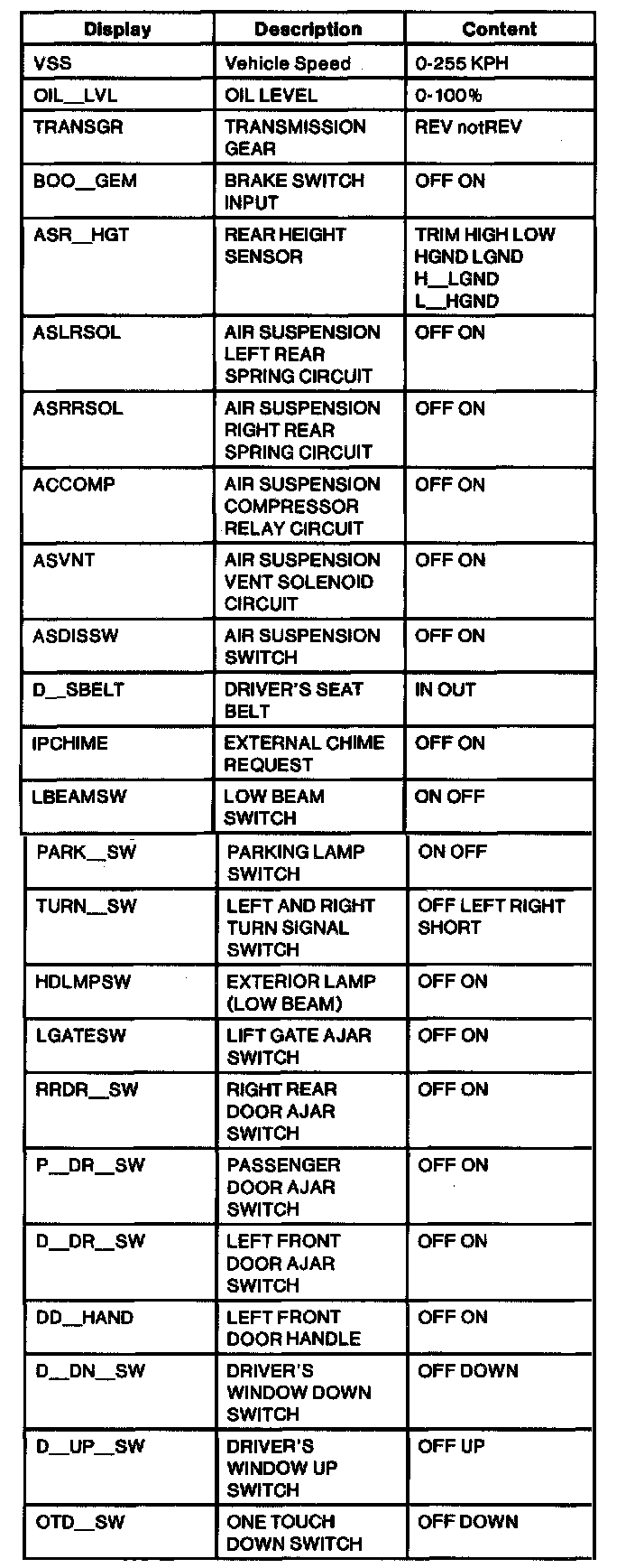 Diagnostic Trouble Code Descriptions