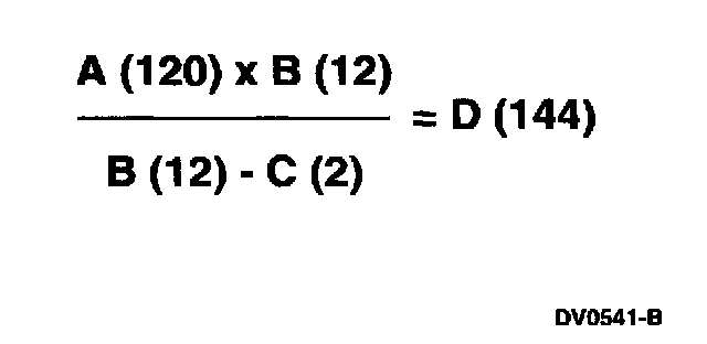 4. Example: multiply the torque value to be obtained A (120) by the length of the torque wrench B (12). Subtract the length of the torque wrench adapter C (2) from the length of the torque wrench B (12). Divide the product of A x B (1440) by the difference of B - C (10) to obtain the torque multiplication conversion D (144).