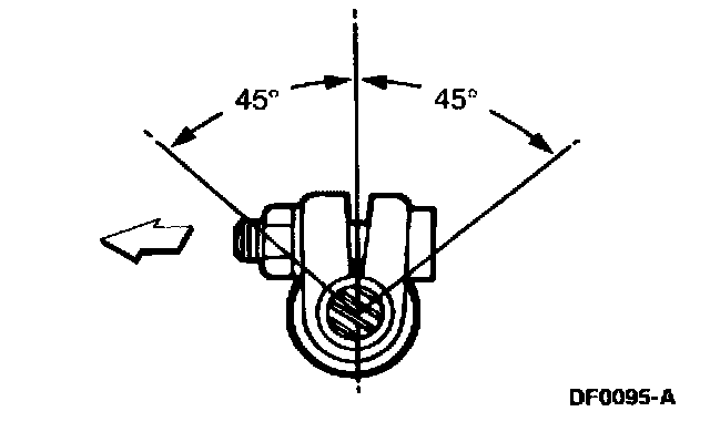 7. Tighten the nuts. Position the LH adjusting sleeve clamp opening upward within 45 degrees of vertical.