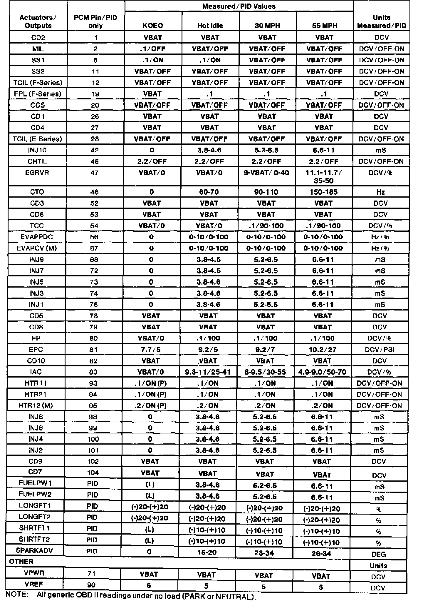 - The Typical Diagnostic Reference Value Charts do not display fault PIDs. These are PIDs which indicate a hard fault with the circuit. They display a value of "YES" or "NO" and are PIDs ending with an "F".