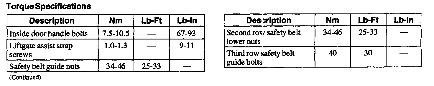 Torque Specifications: