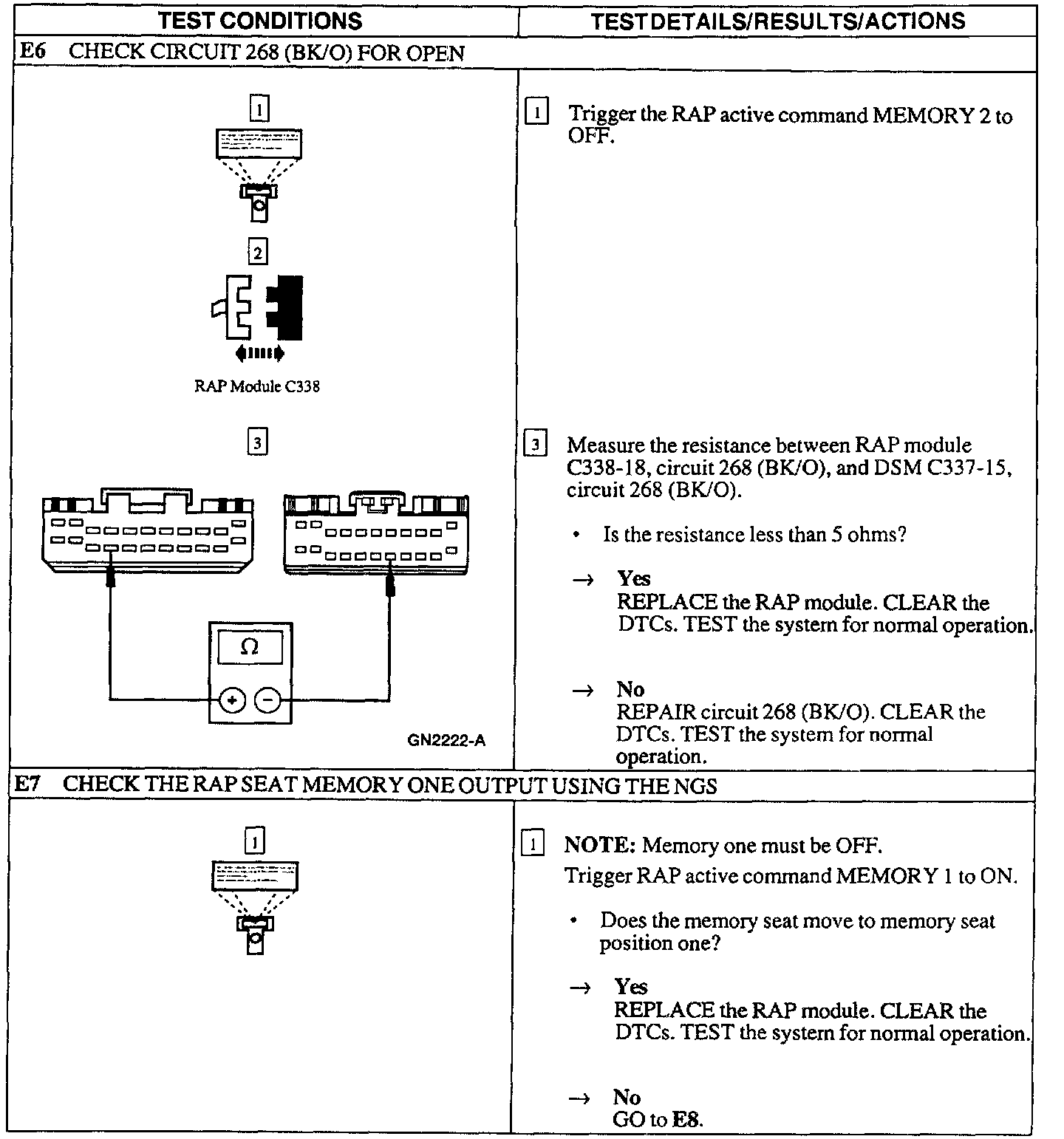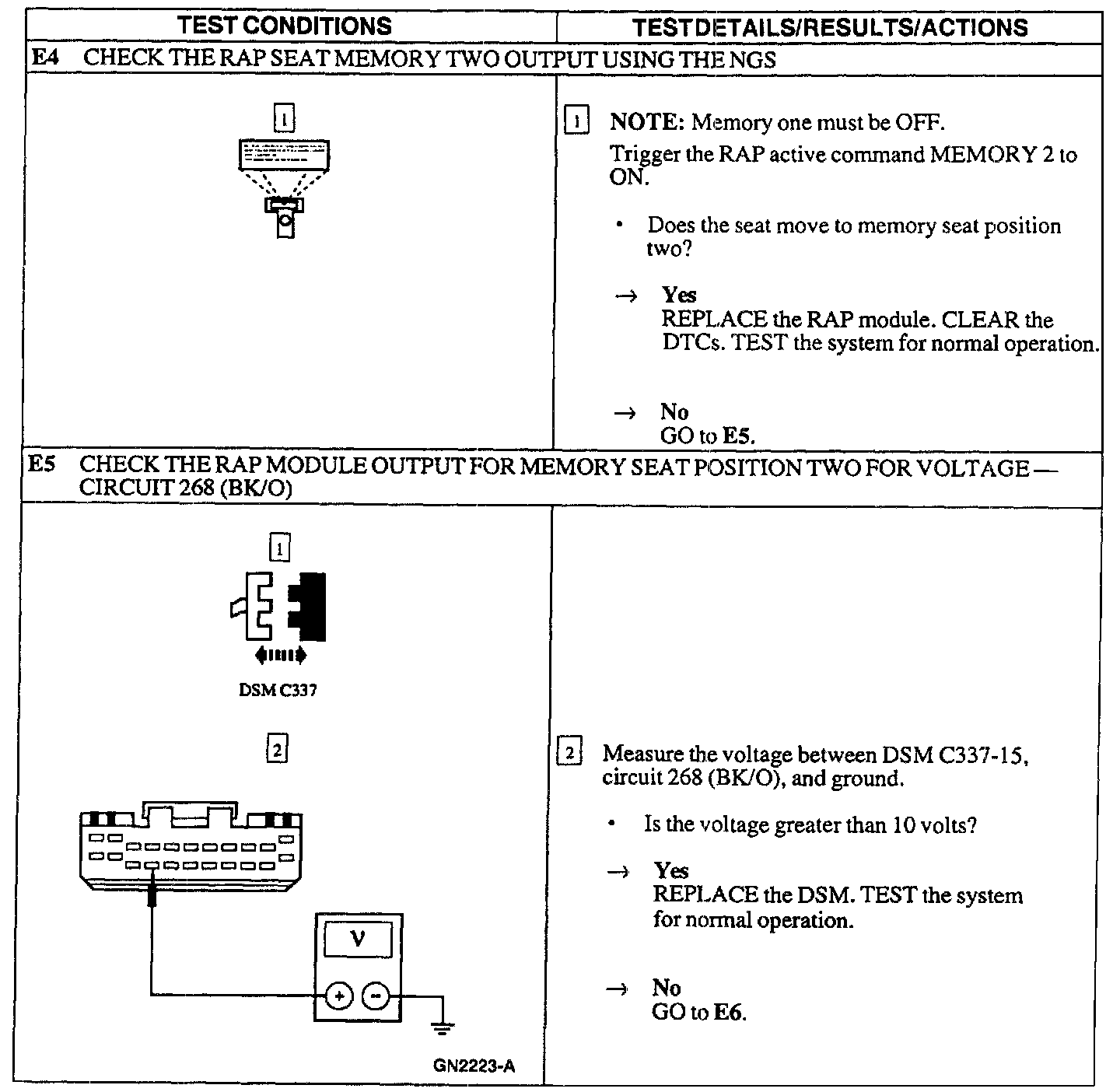 Test E: Memory Seat Does Not Operate Properly W/Remote