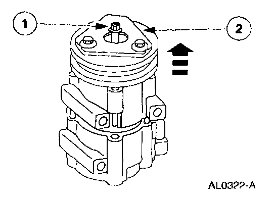 1 Thread an 8 x 1.25 mm bolt into the A/C clutch to force it from the compressor shaft.