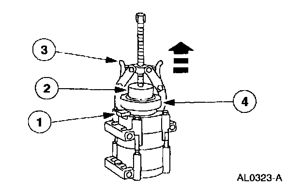 4 Use the 2-Jaw Puller to install the A/C clutch field coil until bottomed completely against the A/C compressor.