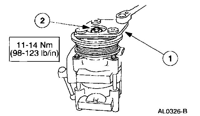 NOTE: The A/C clutch pulley is a tight fit on the A/C compressor head; it must be correctly aligned during installation.