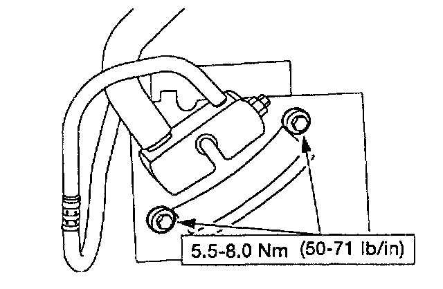 ^ Apply Pipe Sealant with Teflon (R) D8AZ-19554-A or equivalent meeting Ford specifications WSK-M2G350-A2 to the threads of the A/C manifold retaining bolt.