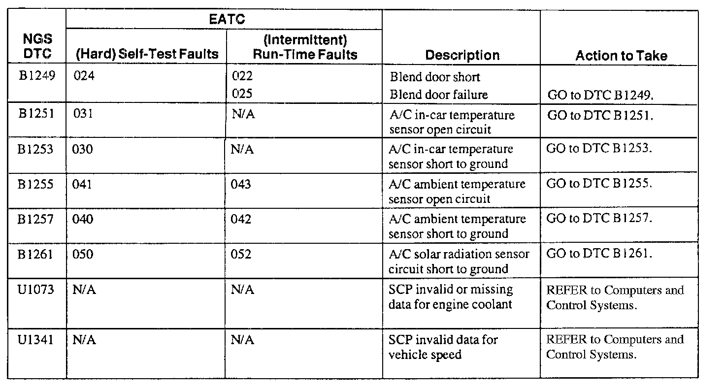 EATC Module Diagnostic Trouble Code Index