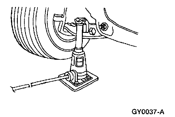 ^ MAKE SURE THE JACK AND JACK STANDS ARE PROPERLY LOCATED TO PREVENT THE VEHICLE FROM FALLING.
