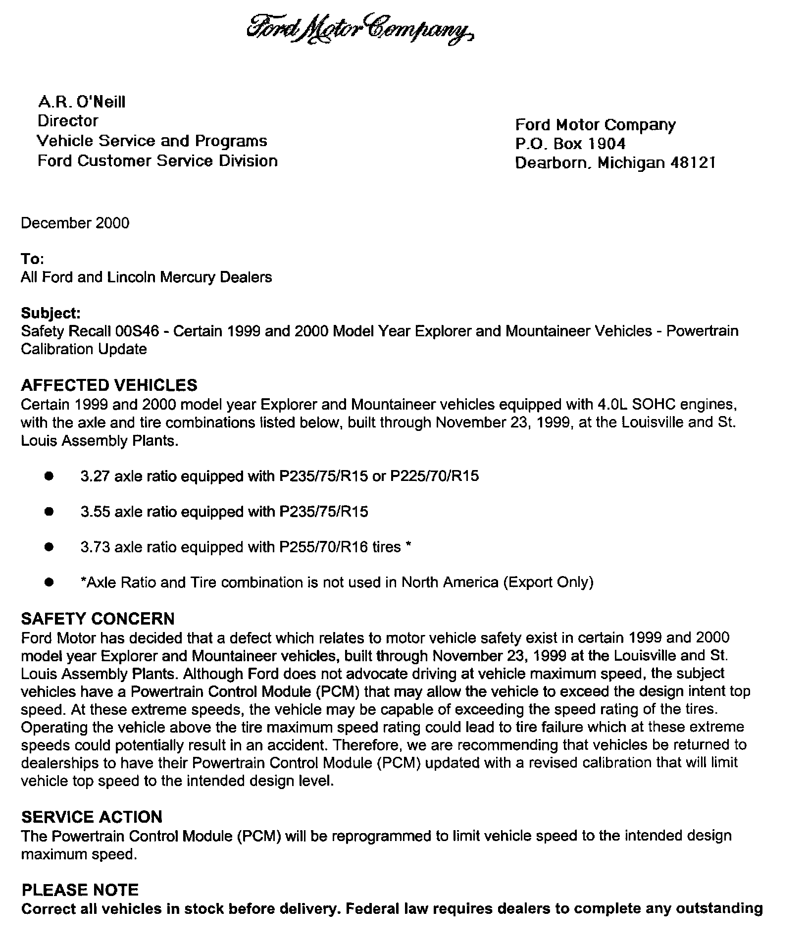 Dealer Letter