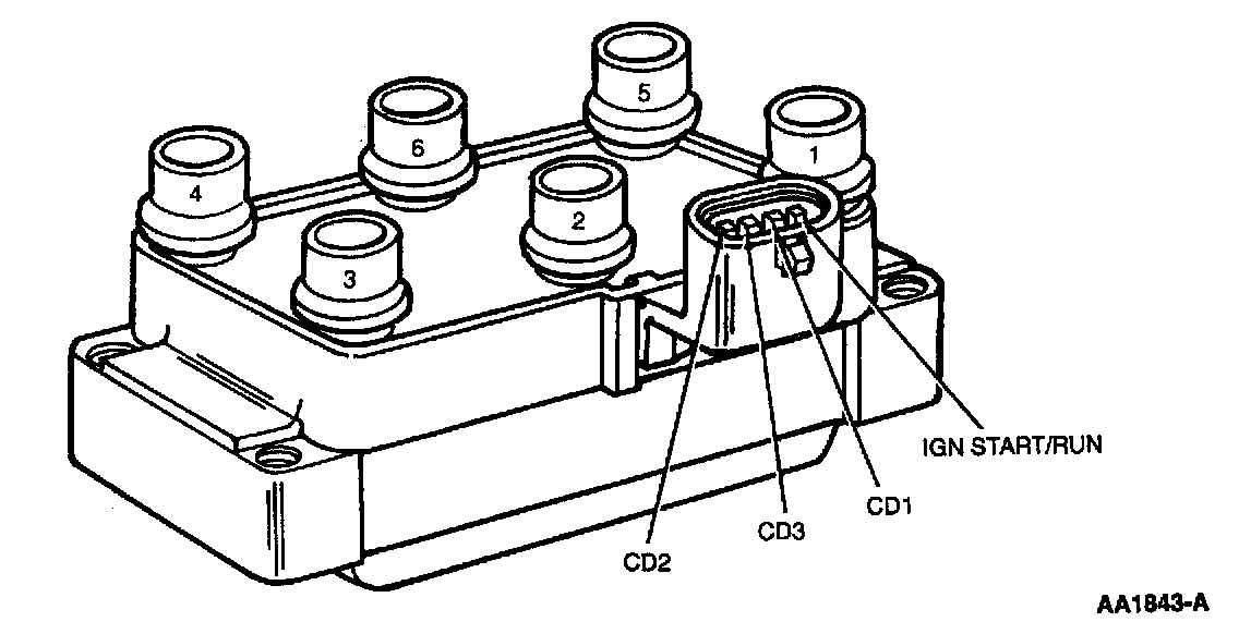 2.5L Contour/Mystique, 2.5L Cougar, 3.0L Taurus/Sable, Windstar, 3.8L, and 3.0L Ranger, 4.2L E/F-Series, 3.8L Mustang, Series (Vertical Connector Six Tower Coil Pack):