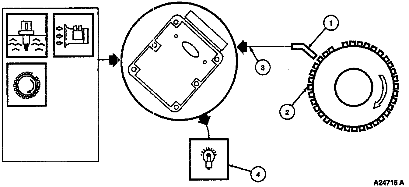 2. The input signal generated by the CKP sensor is derived by sensing the passage of teeth from the crankshaft position wheel mounted on the end of the crankshaft.