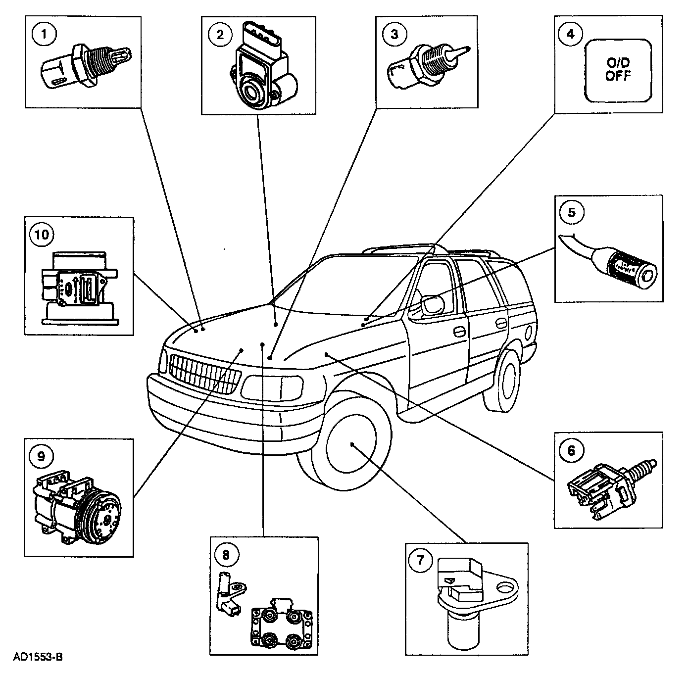 The Intake Air Temperature (IAT) sensor provides the Sequential Fuel Injection (SFI) system mixture temperature information. The IAT sensor is used both as a density corrector for air flow calculation and to proportion cold enrichment fuel flow. The LAT sensor is installed in the air cleaner outlet tube. The IAT sensor is also used in determining Electronic Pressure Control (EPC) pressures.