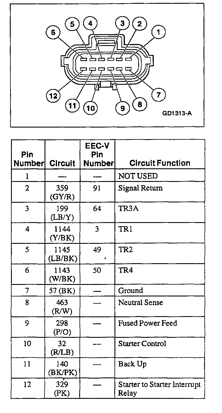 DIGITAL TRANSMISSION RANGE (TR) SENSOR HARNESS CONNECTOR