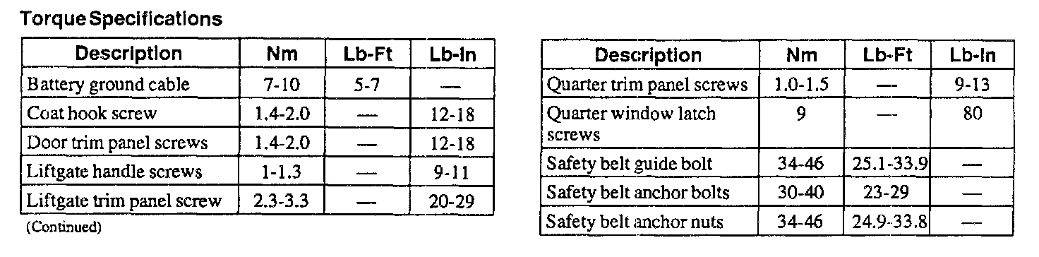 Torque Specifications: