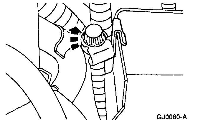 2. Remove the evaporative emissions service port from the battery tray.