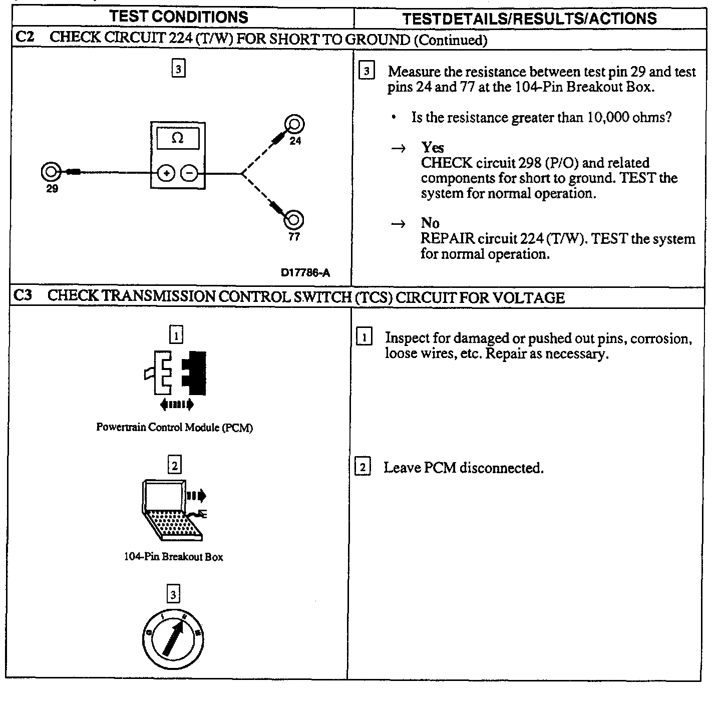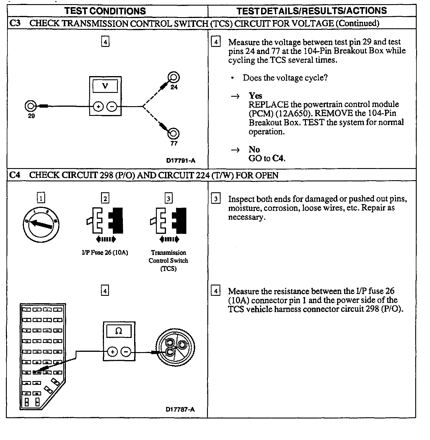 PINPOINT TEST C: TRANSMISSION CONTROL SWITCH (TCS) IS NOT OPERATING PROPERLY