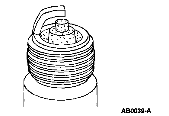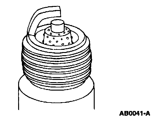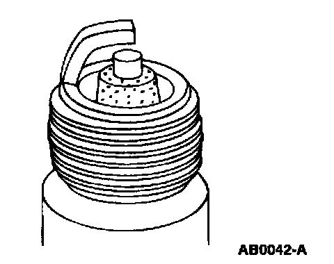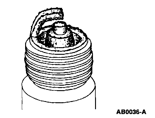 6. Inspect for carbon fouling, identified by black, dry, fluffy carbon deposits on insulator tips, exposed shell surfaces and electrodes. This is caused by a spark plug with an incorrect heat range, dirty air cleaner, too rich a fuel mixture or excessive idling.