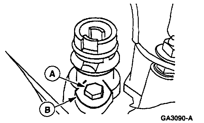 3. Remove the (A) bolt and (B) clamp.