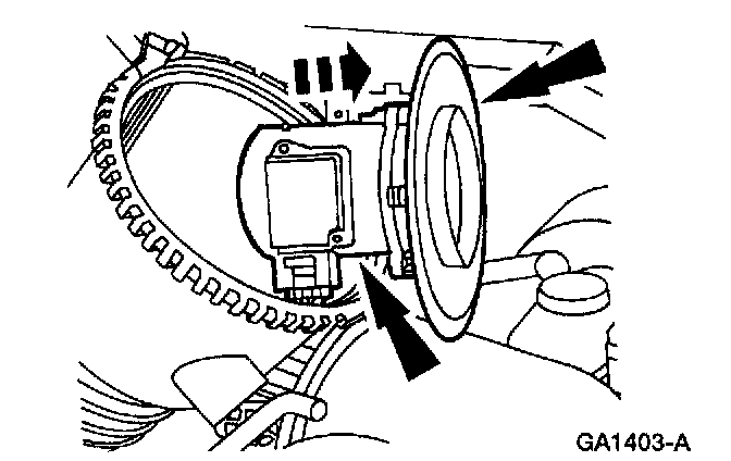 ^ Disconnect the Mass Airflow (MAF) sensor connector from the wiring harness.
