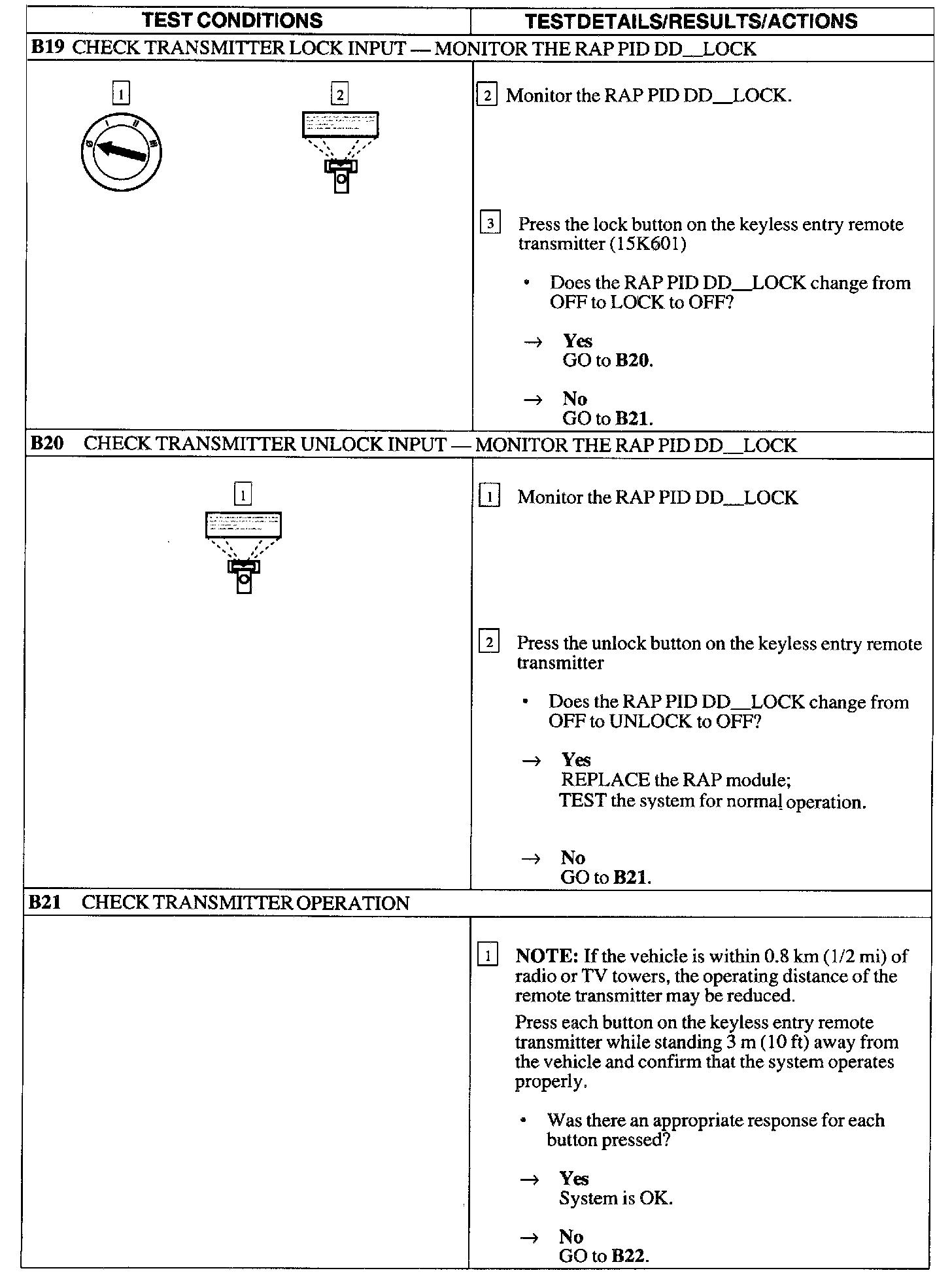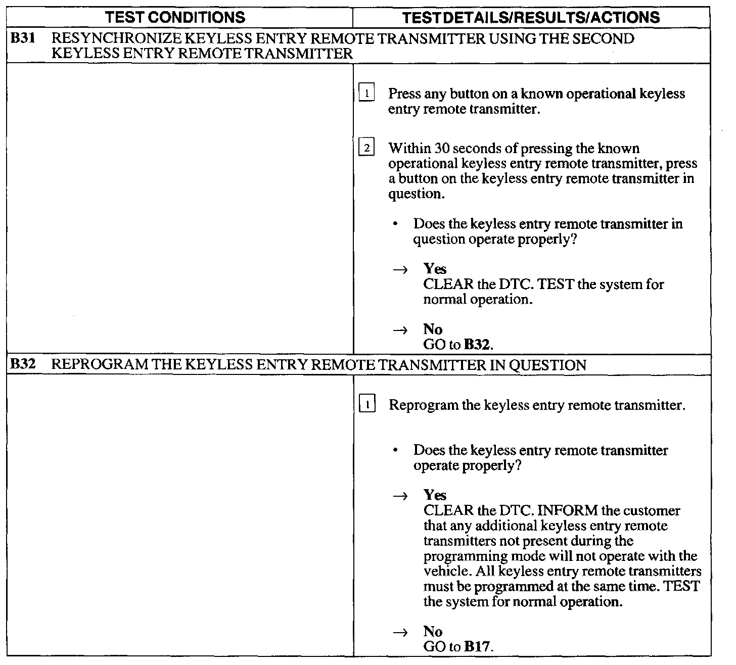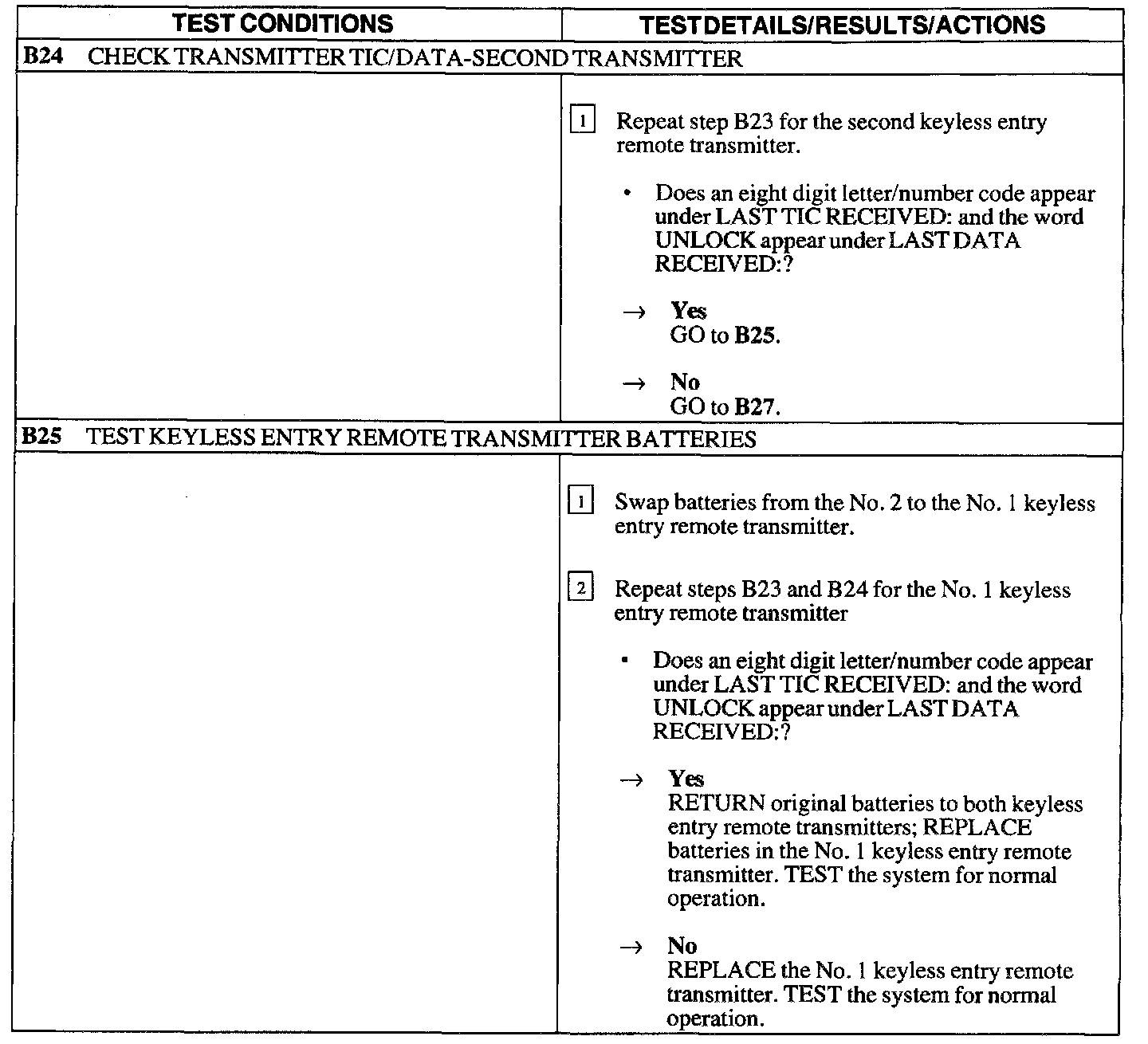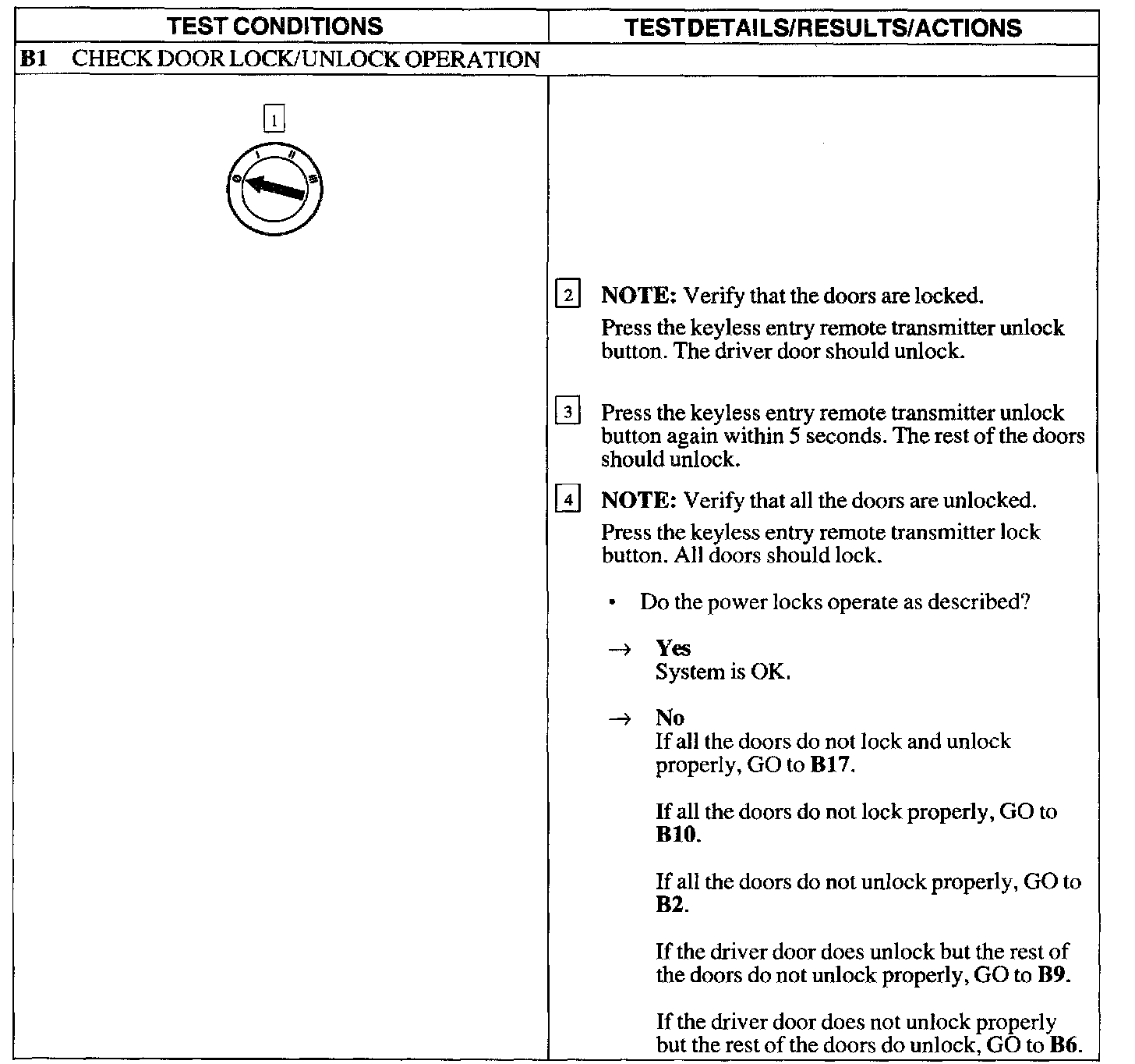 Test B: Doors Do Not Lock/Unlock Using the Remote Transmitter