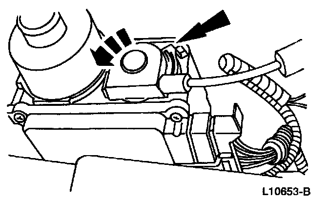 - Depress the speed control actuator cable cap tab inward and twist the actuator cap counterclockwise to remove.