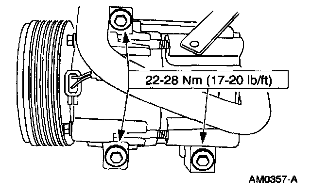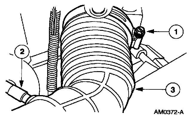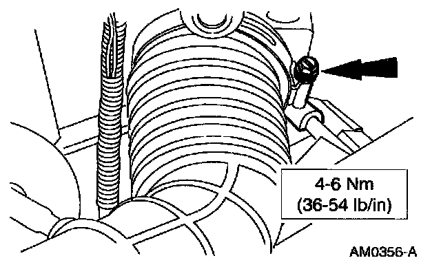 - Apply Pipe Sealant with Teflon (R) D8AZ-19554-A or equivalent meeting Ford specifications WSK-M2G340-A2 and ESR-M18P7-A to the threads of the A/C manifold retaining bolt.