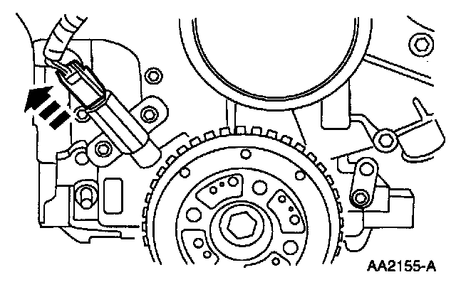4. Remove the bolts and remove the crankshaft position sensor.