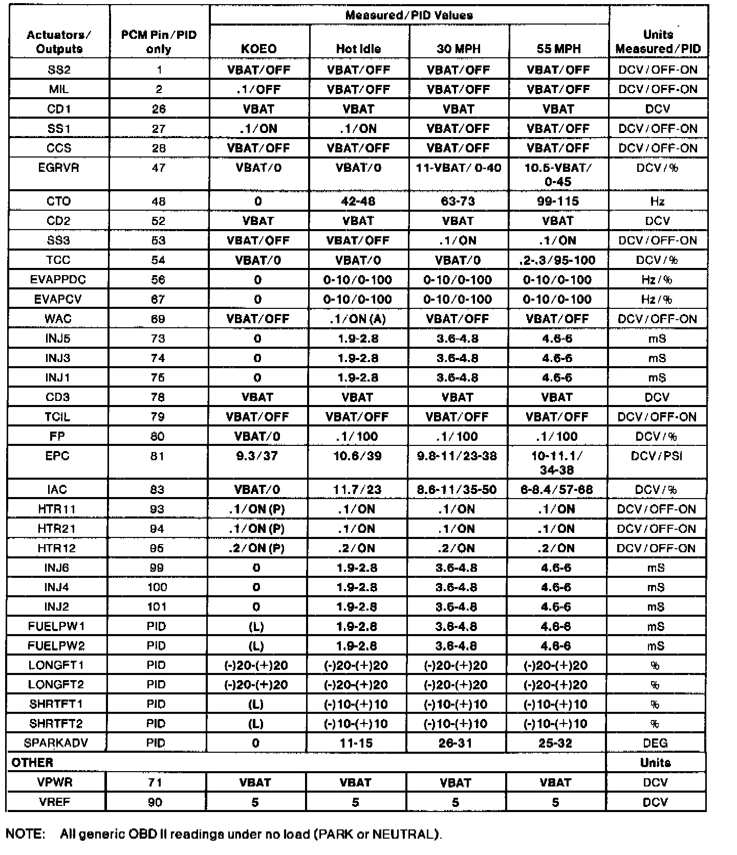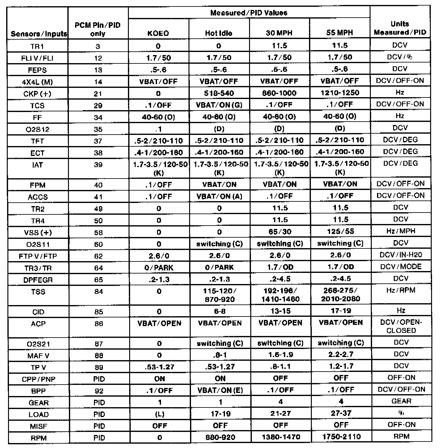 - The Typical Diagnostic Reference Value Charts do not display fault PIDs. These are PIDs which indicate a hard fault with the circuit. They display a value of "YES" or "NO" and are PIDs ending with an "F".