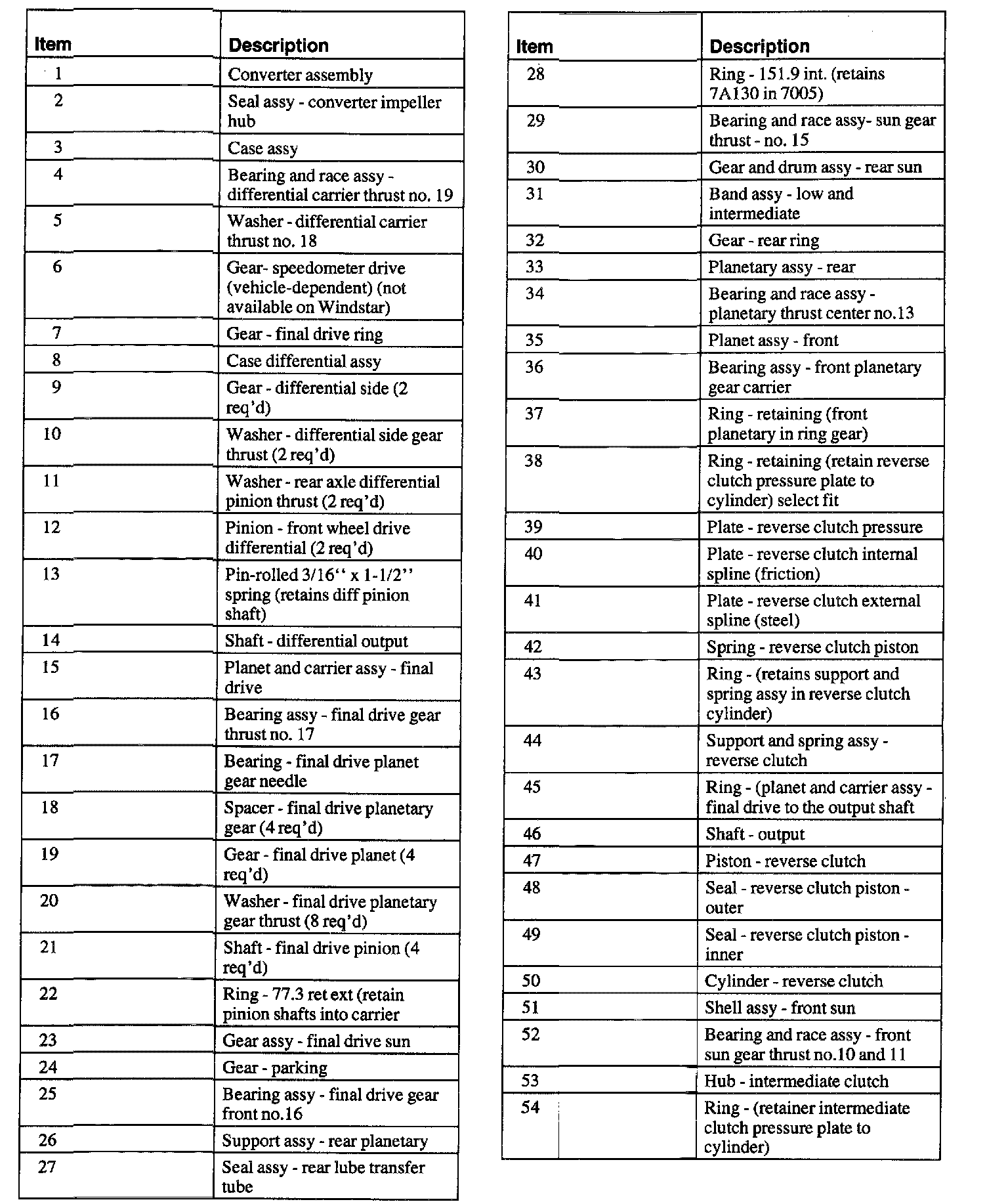 Windstar V6-3.0L VIN U