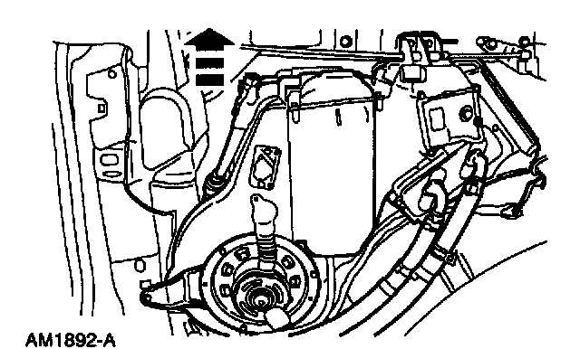 CAUTION: Do not spill any of the remaining coolant or refrigerant oil in the vehicle when removing housing.