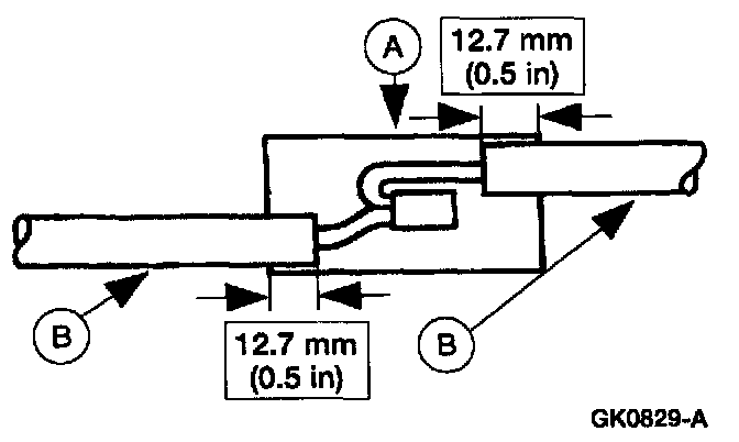 5. Position the (A) heat shrink tube over the (B) wire repair.