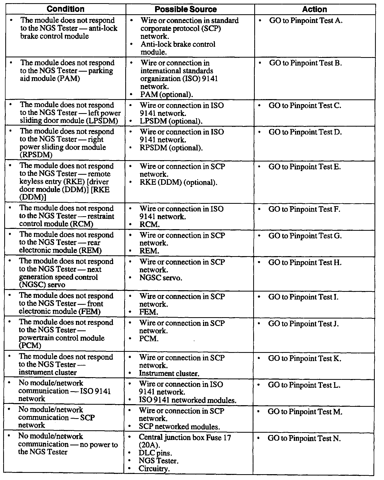 Pinout Values and Diagnostic Parameters