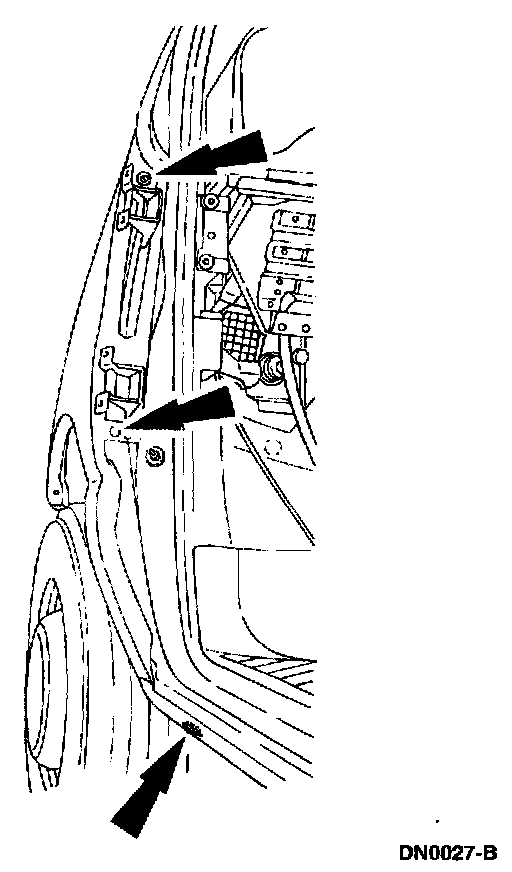 - Remove the front fender-to-fender upper apron retaining screws.