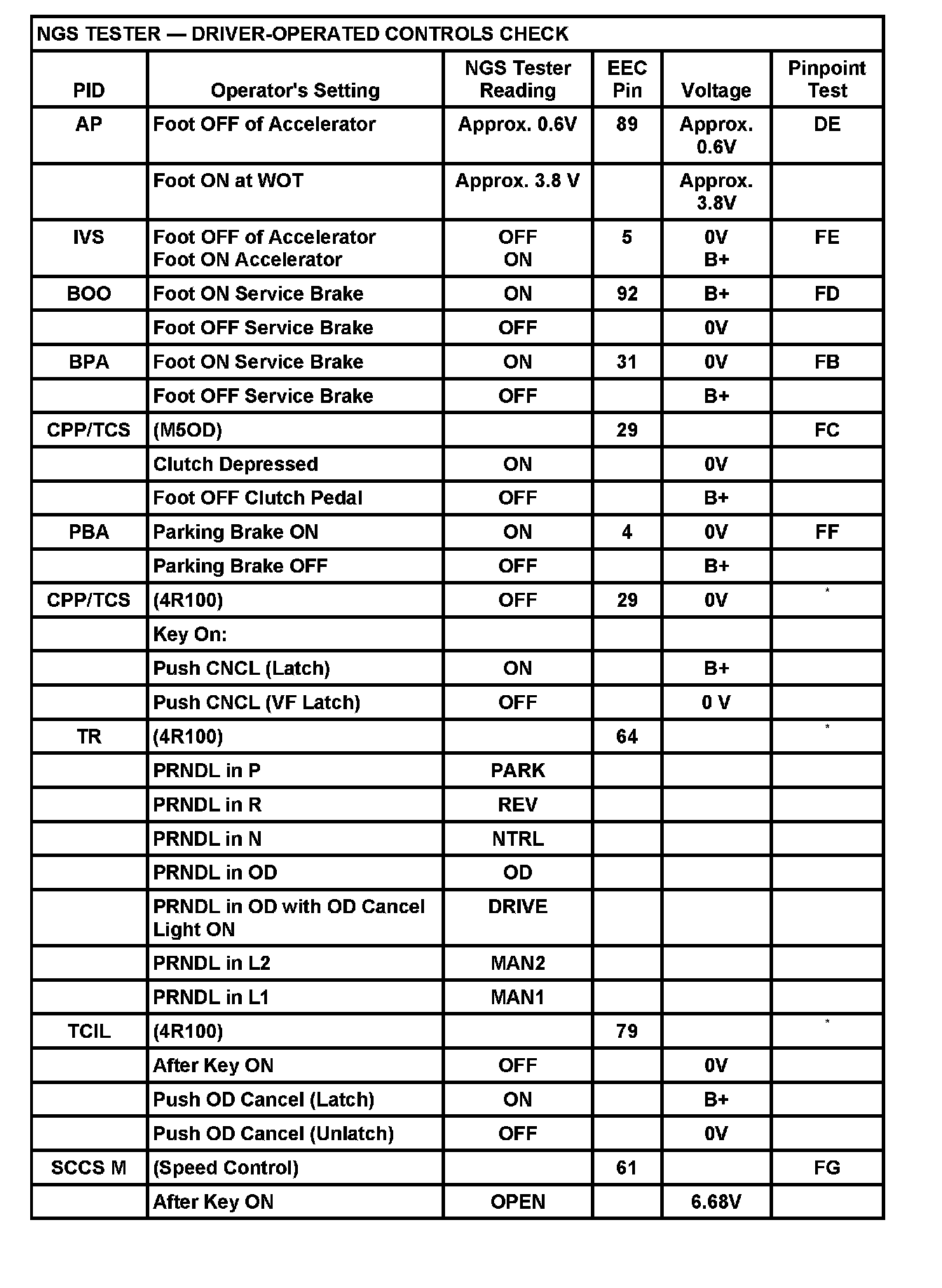 NGS Tester - Driver-Operated Controls Check