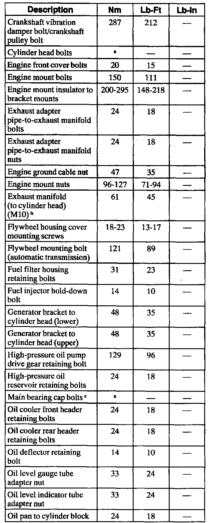 c Tighten four main beaing cap bolts to 102 Nm (75 lb-ft) before final torque is applied.