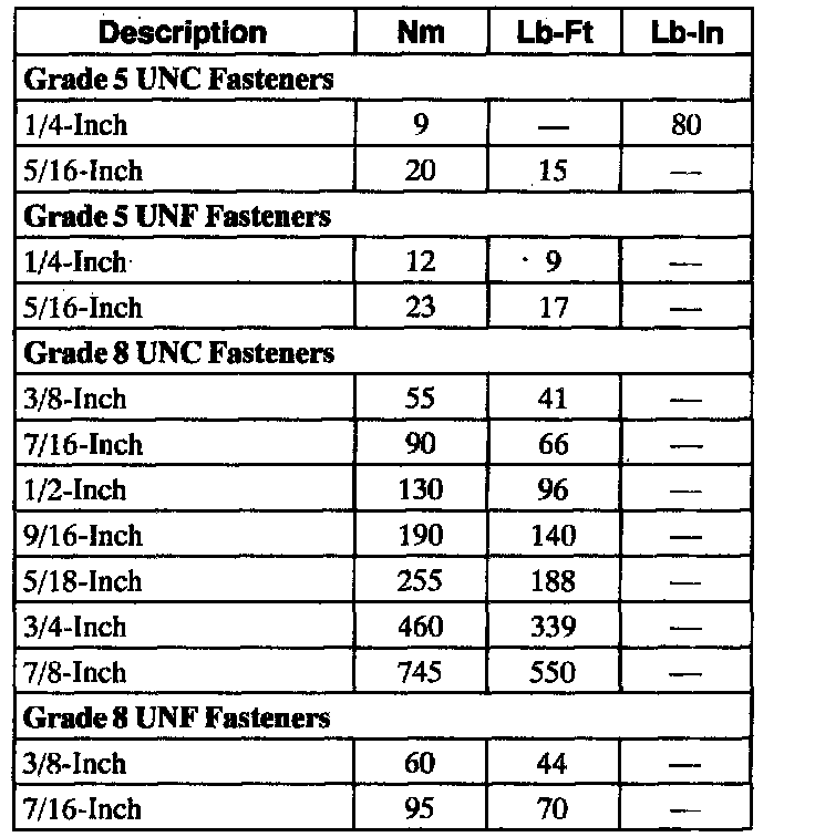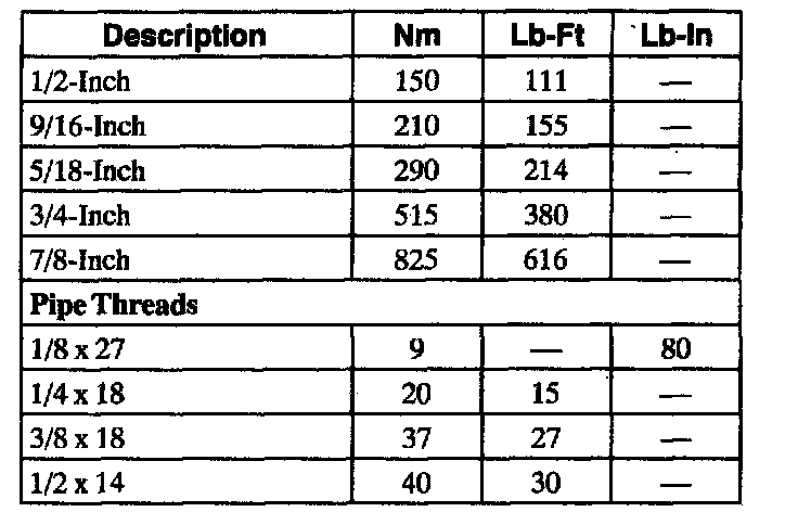 d Refer to Standard Fastener Torque charts (provided above) for applicable torque value.