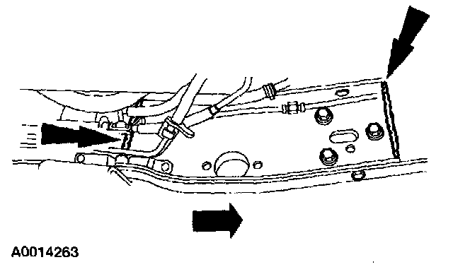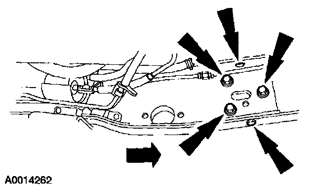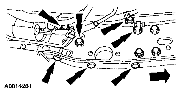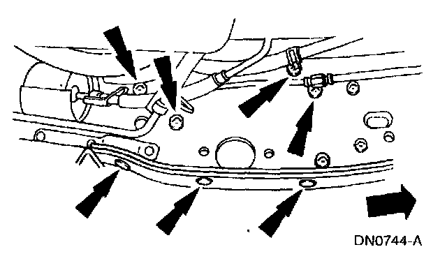 5 Remove the exhaust system components as necessary to access the front stub-to-reinforcement rivets.