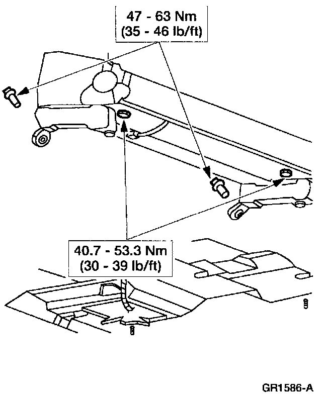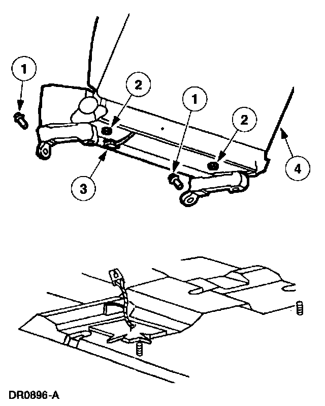 1 Remove the two front seat riser support-to-floorpan bolts.